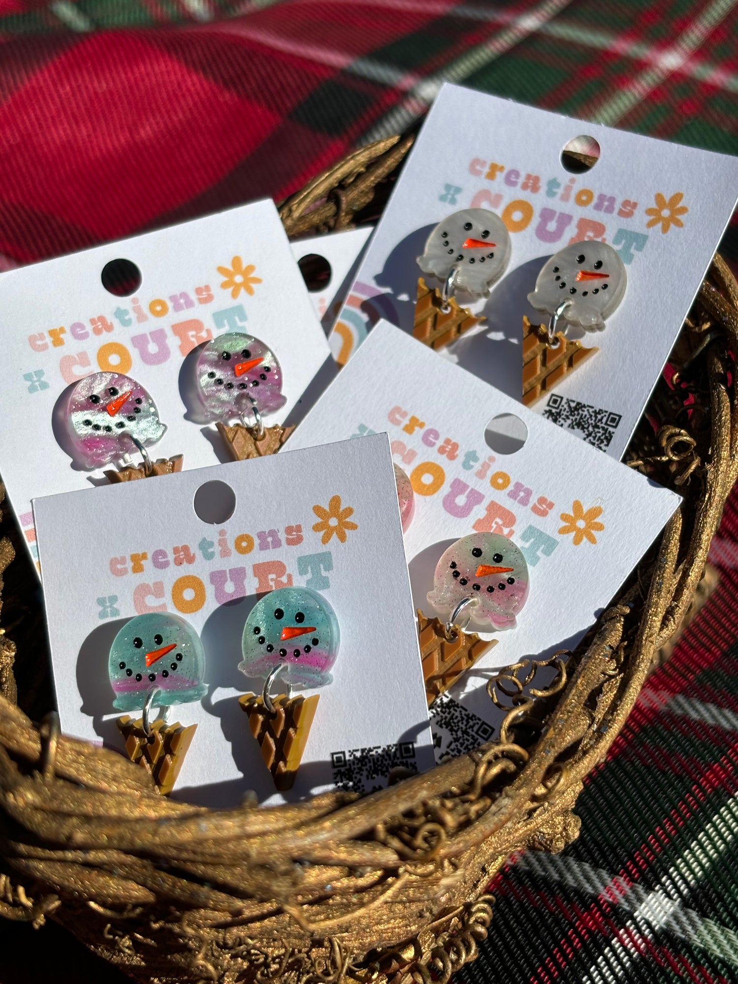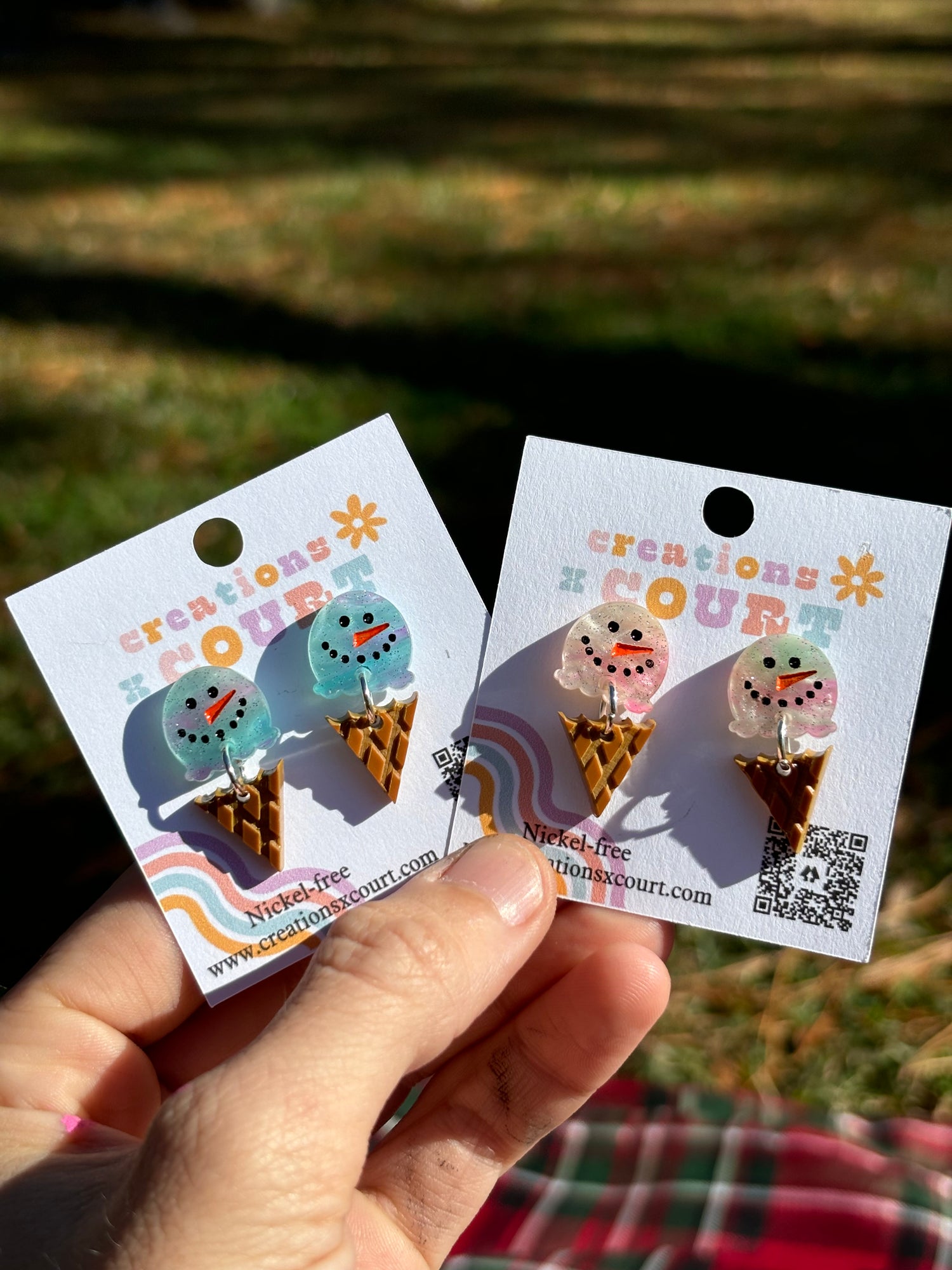 Get ready for the winter season with these Snow Cone Dangles! These adorable snowman snow cone-shaped earrings are hand painted, lightweight and nickel free, making them both cute and confortable to wear. Perfect for adding a touch of quirkiness to any outfit.