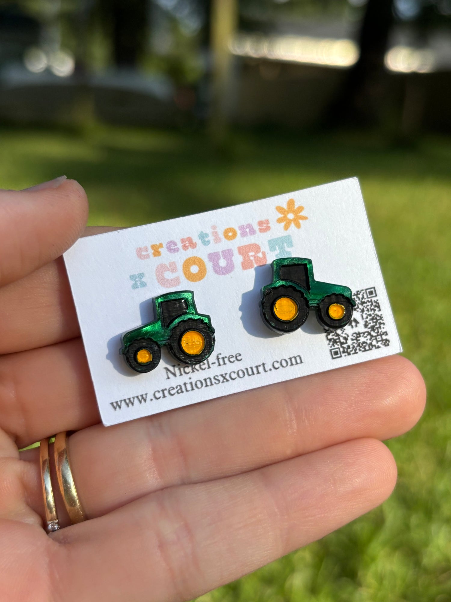 Get ready to turn heads with our Tractor Dangles and Studs! These farming earrings are not only super cute, but also nickel free, making them perfect for anyone with sensitive ears. Plus, they are lightweight so you can comfortably wear them all day long. Time to add some fun to your wardrobe!