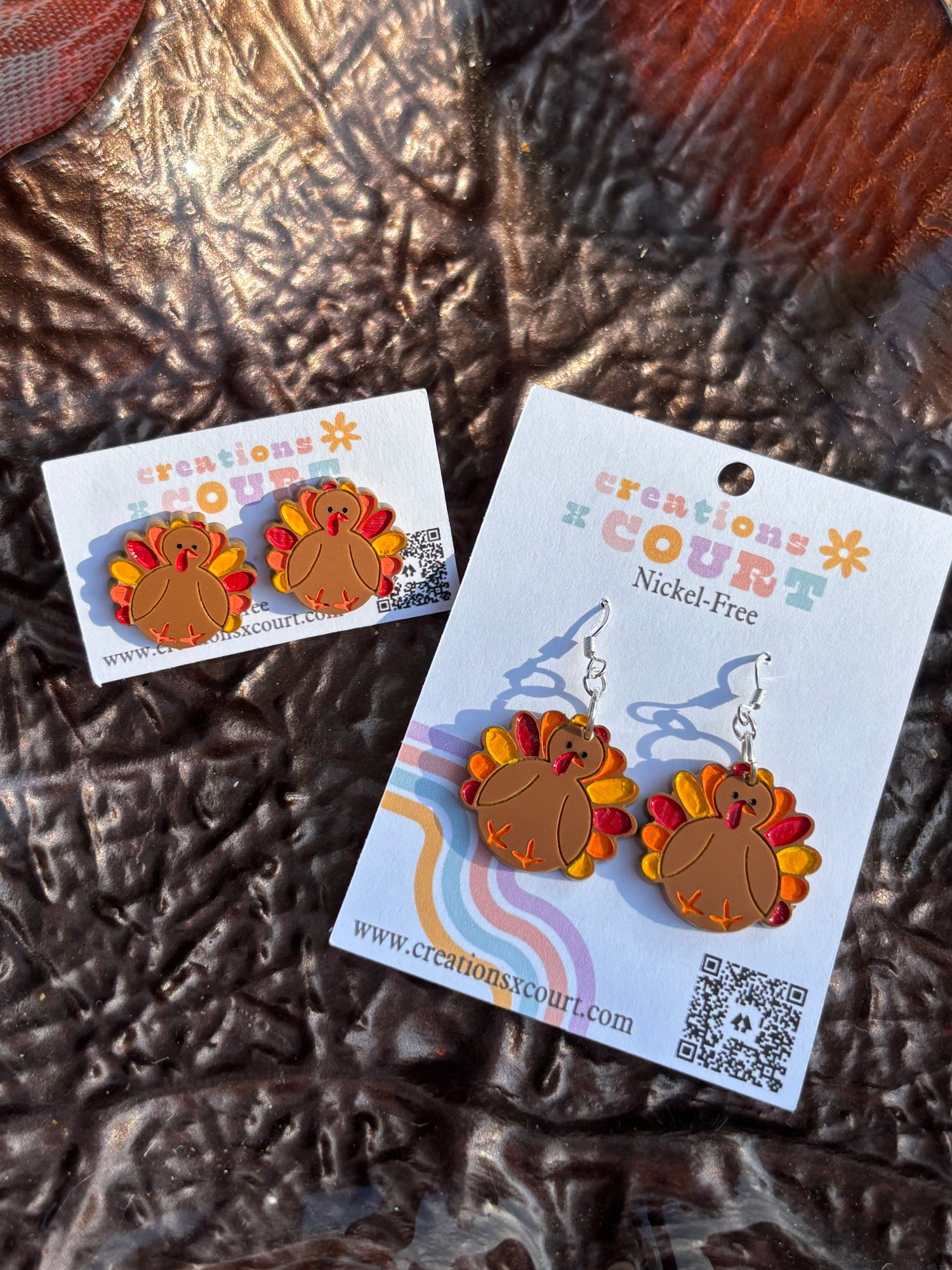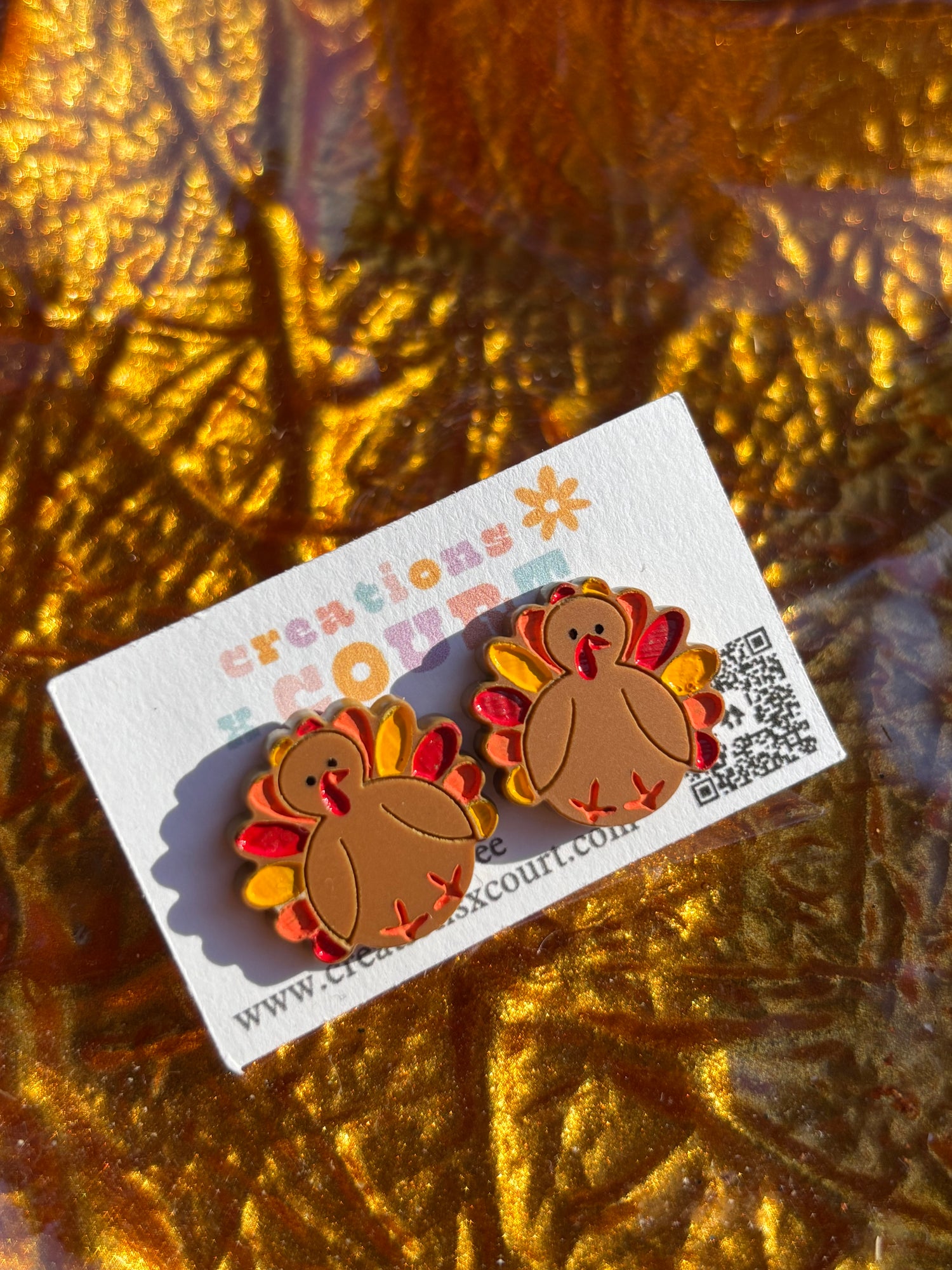 Gobble up the compliments with our handmade and hand painted turkey studs! Hypoallergenic and lightweight for all day wear. (No turkey was harmed in the making of these playful earrings!)