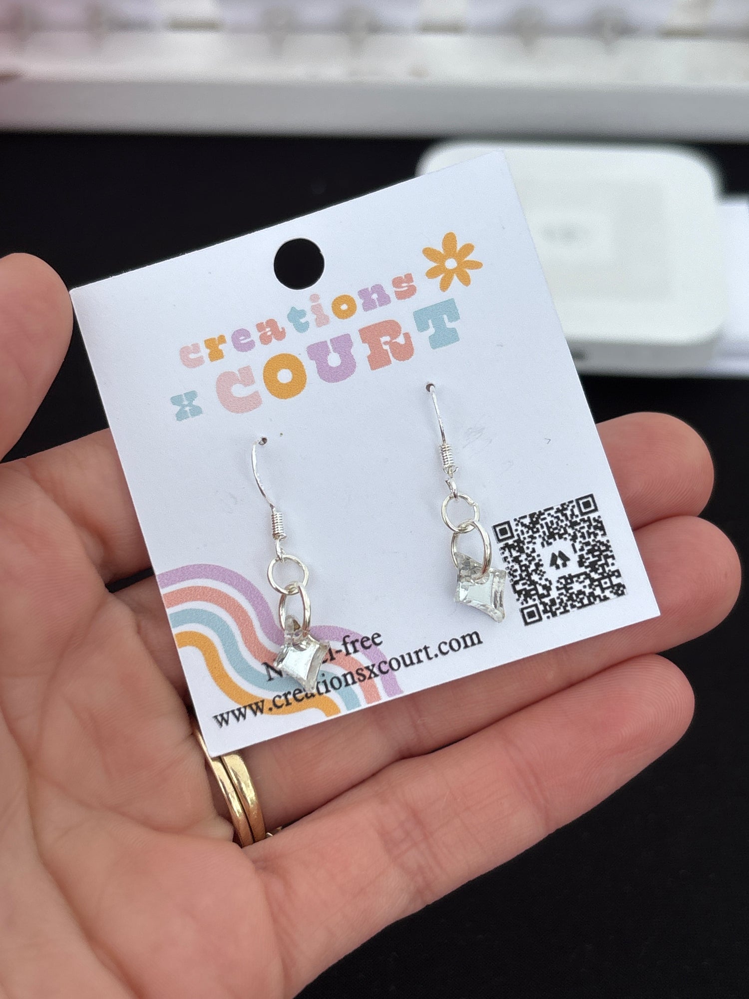 Introducing XS Shimmer Dangles, perfect for the little ones who want a touch of dainty cuteness! These smaller dangles feature a shimmering design and are hypoallergenic for sensitive ears. Say goodbye to boring earrings and hello to fun and playful style!